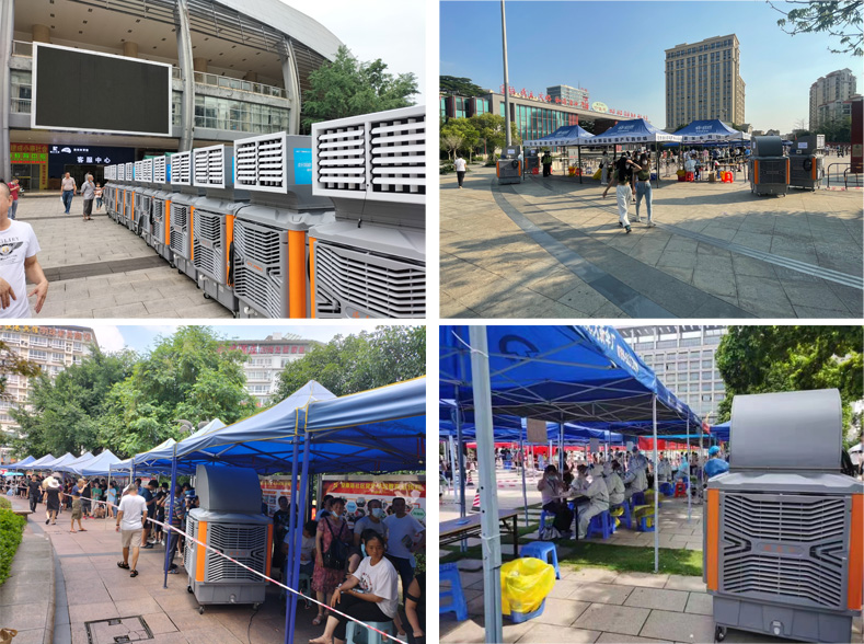 考慮到國內(nèi)疫情反復,東莞各鎮(zhèn)、社區(qū)的抗疫工作還在延續(xù),加之天氣逐漸轉(zhuǎn)熱,疫情防控工作需要解決一系列問題,包括如何保障核酸檢測、疫苗接種的醫(yī)務人員及排隊市民免受高溫困擾。前期了解到社區(qū)抗疫的需求,在陳總的積極倡導和快速對接下,瑞泰風“2022抗疫護航行動”活動委員會決定向東莞市寮步良平社區(qū)捐贈兩車次共十多臺瑞泰風移動式冷風機用于抗疫公益事業(yè),8號當天,捐贈的抗疫物資已經(jīng)送達良平社區(qū)各核酸檢測點投入使用。