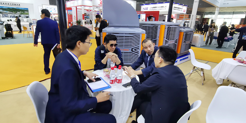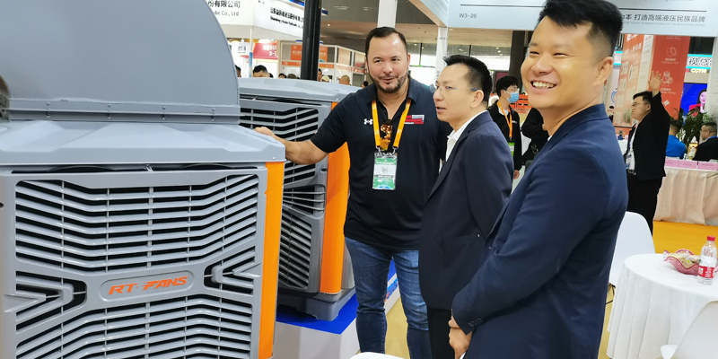 瑞泰風(fēng)經(jīng)過精心籌備,并憑借精湛的產(chǎn)品技術(shù)水準(zhǔn),高大空間低碳通風(fēng)降溫設(shè)備再次成為展覽會(huì)中一大亮點(diǎn)。擁有獨(dú)具匠心的產(chǎn)品,現(xiàn)場(chǎng)吸引了眾多中外客商的駐足觀看與咨詢洽談,并解決了意向購(gòu)商的降溫問題,經(jīng)過現(xiàn)場(chǎng)工程師及銷售精英對(duì)技術(shù)解決與方案優(yōu)化,眾多客戶大為滿意,現(xiàn)場(chǎng)達(dá)成購(gòu)貨意向并簽單,未來幾天期待收獲碩豐,滿載而歸。